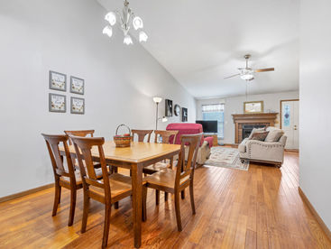 Gorgeous, Villa-style condo in the highly desirable Villages of Windwood. This is a fabulous, 1-story home; a rare find! Walk straight into this spacious, open floor concept w/ well-maintained, hardwood floors in the main living area, then on to the inviting kitchen w/ plenty of cabinet & cupboard space, and a convenient door that leads straight out to your private patio backing to common ground with a beautiful, park-like setting. You'll love the super-spacious, 17x12' master bedroom with 6x6' walk-in closet. The secondary bedroom is very roomy as well with 13x11' of potential flex space for a nice office, if preferred. You'll also find ample space in the full bathroom w a double-bowl vanity, separate tub & shower, & 2 entrances. Main floor laundry! HVAC, HWH, garbage disposal & garage opener, less than 5 yrs old! HOA covers some insurance, water, trash, POOL, snow removal & lawn care/landscaping. Excellent location with quick access to Hwys 364, 94 & 70, schools, dining and shopping!